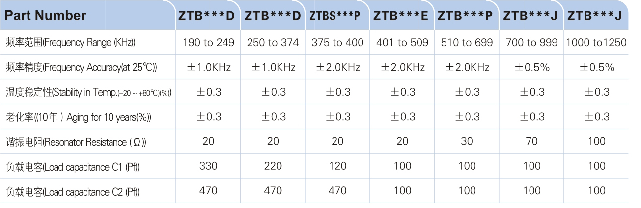 ZTB Series中频陶瓷谐振器